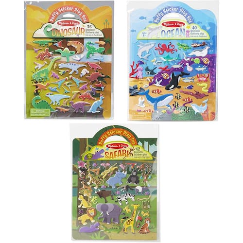 Conte histórias de aventuras selvagens com adesivos fofos com esses divertidos adesivos e cenas dimensionais! Cada conjunto (safári, dinossauro e oceano) vem com um cartão de fundo dobrável e adesivos fofos reutilizáveis para preencher as cenas. Basta colocar e colocar em camadas os 36 adesivos fofos de criaturas pré-históricas, 42 adesivos fofos de animais do Safari e 40 adesivos fofos de criaturas marinhas nos painéis de fundo brilhantes de dupla face. Pronto para uma mudança de história? É fácil levantar, trocar, colocar em camadas e reorganizar tudo para retratar qualquer história “selvagem” que as crianças possam imaginar! Os conjuntos de jogos oferecem oportunidades infinitas para as crianças expressarem sua criatividade e se divertirem fingindo e brincando, ao mesmo tempo em que melhoram as habilidades motoras finas e a comunicação. Eles também são ótimos para viagens: os fundos resistentes (com alças embutidas!) dobre para guardá-los cuidadosamente. Por mais de 30 anos, a Melissa & Doug criou produtos lindamente projetados que estimulam a imaginação e a criatividade, que a NBC News chamou de “o padrão-ouro em brincadeiras na primeira infância”. Projetamos cada brinquedo de acordo com os mais altos padrões de qualidade e para nutrir mentes e corações. Se seu filho não estiver inspirado, ligue para nós e resolveremos o problema. Nosso número de telefone está em todos os produtos!
