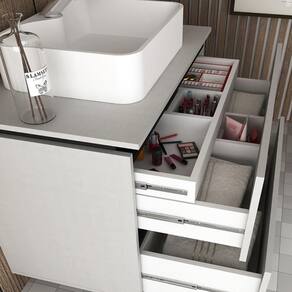 É produzido com excelentes materiais, seu espelho possui tamanho ideal e acabamento impecável, cabe mencionar ainda as corrediças telescópicas na gaveta, que por sua vez conta com 3 divisórias internas, além da cuba que cria um contraste maravilhoso com a cor do gabinete. Pode ser disposto em banheiro, lavabo ou outro cômodo de sua preferência. Aproveite!