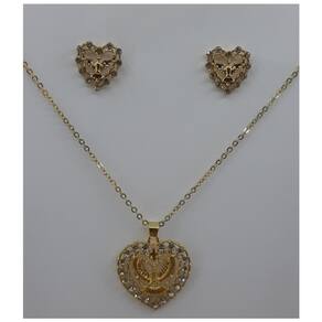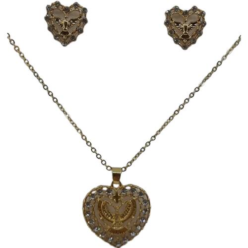 Conj Brinco e Colar Folheado Ouro Espírito Santo 4 Modelos - Cor: Coração Modelo 1