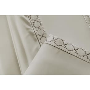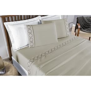 - Contém: 01 Lençol de Cima 2,80m x 2,40m, 01 Lençol de Baixo com Elástico para colchão de 1,93m x 2,03m x 40cm de altura, 02 Fronhas 70cm x 50cm. - Tecido: Micro Percal 300 Fios, 100% Poliéster.