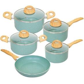 LIVRE DE PFOA: A cor Verde deste conjunto traz sofisticação e cabos/alças são em baquelite soft-touch de efeito amadeirado. As tampas, em vidro temperado, têm saída para o vapor. O jogo de panelas ainda conta com a certificação PFOA free, isto é, são itens livres de liberação de toxinas.