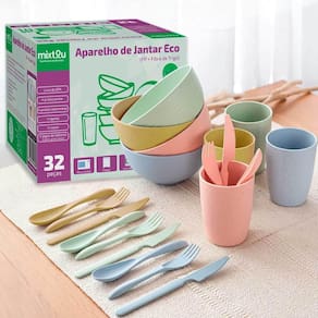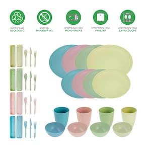 Conj. Louças Fibra De Trigo Premium 32Pçs Bpa Free Colorido