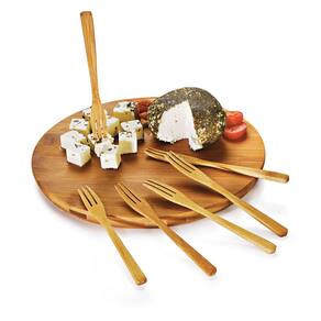 Conjunto para petiscos em Bambu. Acompanha tábua e seis garfinhos para queijo. Tábua confeccionada com tripla camada invertida, para dar maior durabilidade e não deformar com o passar do tempo. Dimensões da tábua: 21,3x1,2cm Imagens Ilustrativas PD-15783 Produtos confeccionados em Bambu: Utilizamos o Bambu, por ser uma matéria prima ecológica, autossustentável e com alta resistência. Além de versátil, o Bambu é 30% mais leve que as madeiras de lei. Sua utilização não agride o meio ambiente, pois, quando ceifado rebrota em pouco tempo. Ean: 7898410448764