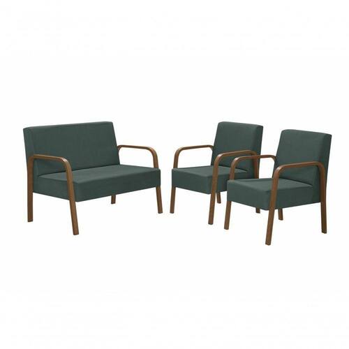 Conjunto Poltrona Luna Braço Madeira D Salla Suede Verde A Poltrona Luna simplicidade e sofisticação, combinando tanto com ambientes modernos quanto com ambientes tradicionais e neutros, dando-lhes mais descontração e leveza. Com o estofamento em espuma D-23 e estrutura em madeira esta poltrona proporciona conforto e segurança para todos que a usarem. Desfrute este conforto