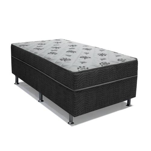 Material da base: Estrutura composta pelo avançado molejo Nanolastic com caixa Ortopédica em madeira Eupalipto Domus de Reflorestamento. Tecido Viscopoli com bordado em Matelassê. Jogo de Pés.