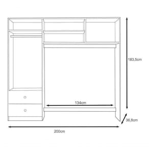 - Espaço para encaixe do berço abaixo do roupeiro é de 134cm