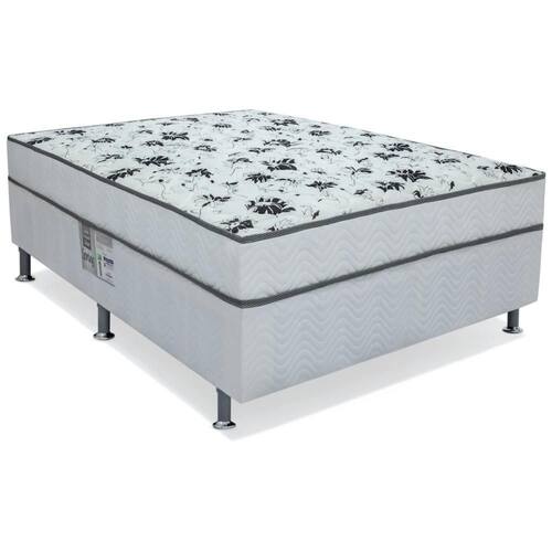 Material da base: Estrutura composta pelo avançado molejo Nanolastic com caixa Ortopédica em madeira Eupalipto Domus de Reflorestamento. Tecido Viscopoli com bordado em Matelassê. Jogo de Pés.