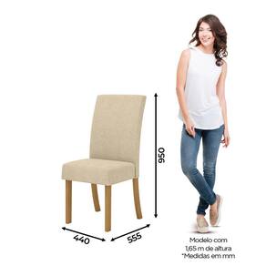 FICHA TÉCNICA: Escala de Brilho Cadeiras: Fosco Cadeiras Possui Rodízio: Não Peso Suportado por Cadeira: 120 Kg Estrutura Assento: MDP/MDF Revestimento Assento: Tecido Suede Enchimento Assento: Espuma D18 Almofada Assento: Não possui Tipo Assento: Fixo Estrutura Encosto: MDP/MDF Revestimento Encosto: Tecido Suede Enchimento Encosto: Espuma D18 Tipo Encosto: Fixo Material dos pés: MDF Medidas Montado: 95 x 44 x 55,5 Cm Peso Montado: 8,5 Kg