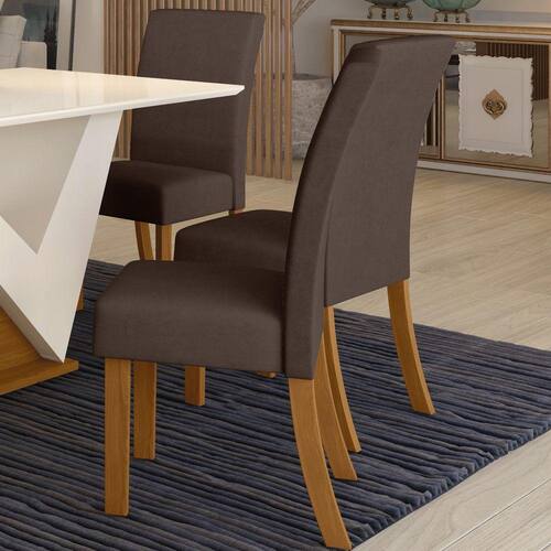 FICHA TÉCNICA: Escala de Brilho Cadeiras: Fosco Cadeiras Possui Rodízio: Não Peso Suportado por Cadeira: 120 Kg Estrutura Assento: MDP/MDF Revestimento Assento: Tecido Suede Enchimento Assento: Espuma D18 Almofada Assento: Não possui Tipo Assento: Fixo Estrutura Encosto: MDP/MDF Revestimento Encosto: Tecido Suede Enchimento Encosto: Espuma D18 Tipo Encosto: Fixo Material dos pés: MDF Medidas Montado: 95 x 44 x 55,5 Cm Peso Montado: 8,5 Kg