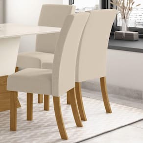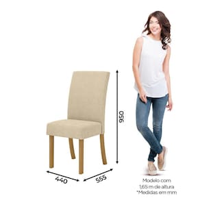 FICHA TÉCNICA: Escala de Brilho Cadeiras: Fosco Cadeiras Possui Rodízio: Não Peso Suportado por Cadeira: 120 Kg Estrutura Assento: MDP/MDF Revestimento Assento: Tecido Suede Enchimento Assento: Espuma D18 Almofada Assento: Não possui Tipo Assento: Fixo Estrutura Encosto: MDP/MDF Revestimento Encosto: Tecido Suede Enchimento Encosto: Espuma D18 Tipo Encosto: Fixo Material dos pés: MDF Medidas Montado: 95 x 43 x 56 Cm Peso Montado: 7,5 Kg