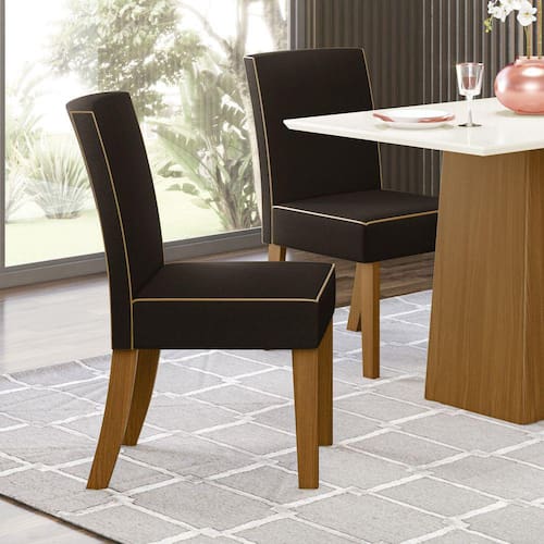 Conjunto 02 Cadeiras Estofadas Maris Henn - Marrom Cacau