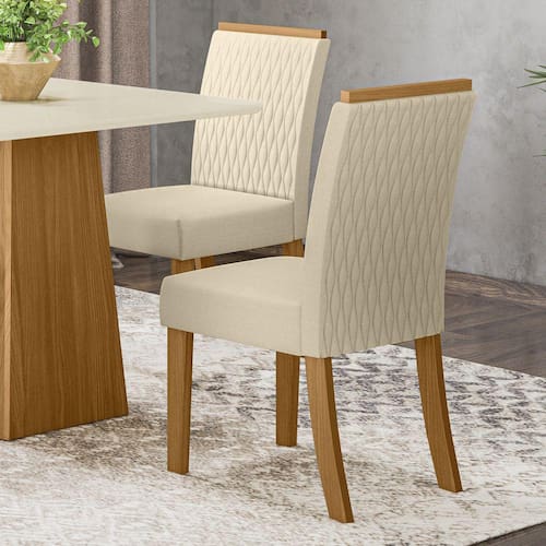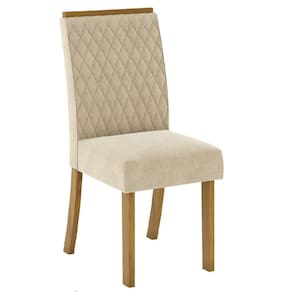 A cadeira Rita possui detalhes únicos que deixam a peça com ar de sofisticado e ao mesmo tempo transparece modernidade. Com pés em MDF de 25mm, sendo que a fixação é feita com peças de metal, que garantem maior segurança e durabilidade ao móvel. Possui moldura para pega no encosto, evitando assim o contato direto das mãos com o tecido. Possui medidas de 950 mm de altura, 440 mm de largura e profundidade de 575mm. O encosto é inclinado reto, estofado do assento com espuma de 30mm e densidade de 23, com tecido Suede bordado, proporcionando maior conforto para aquele descanso merecido e para os momentos tão especial de reunir a família