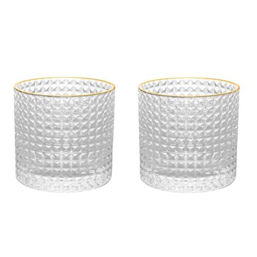 Conjunto 02 Copos para Whisky de Vidro com Borda Dourada 320 ml Spike Wolff
