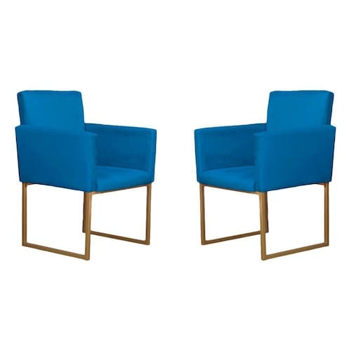 Conjunto 02 Poltronas Decorativas Klara Pés Base Ferro Dourada