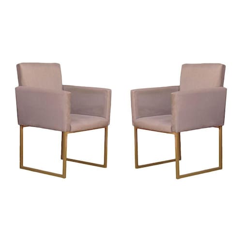 Conjunto 02 Poltronas Decorativas Klara Pés Base Ferro Dourada