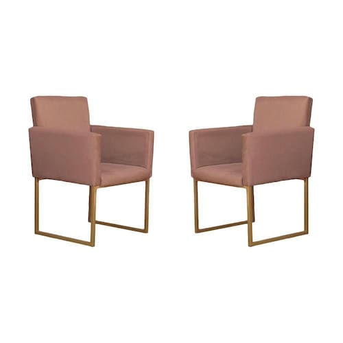 Conjunto 02 Poltronas Decorativas Klara Pés Base Ferro Dourada