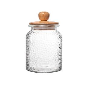 Conjunto 02 Potes de Vidro Martelado com Tampa Hermética de Bambu 1L Wolff