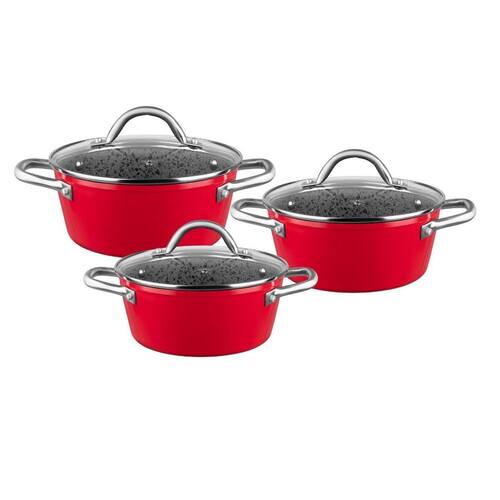 Com a linha Granito Stone-Flon e sua incrível tecnologia de antiaderente, você garante máxima velocidade no preparo de suas receitas, qualidade e resistência para acompanhar seu dia a dia e facilidade de limpar, conservar e usar novamente. Seu exclusivo revestimento com alto poder antiaderente, aliado as suas partículas minerais, garante selagem superior para que os alimentos deslizem facilmente, fazendo uso mínimo de óleo. Retém e distribui o calor para preparar suas receitas com máxima eficiência mesmo a baixas temperaturas. E ainda garante máxima resistência e durabilidade para te acompanhar no dia a dia. Possuem cabos em aço inoxidável com rebites de alumínio reforçados, assegurando seu uso também em forno, além de seu design incomparável. pintura externa em silicone. Um verdadeiro show de produto COMPOSIÇÃO 01 Caçarola 20cm 2,5L 01 Caçarola 24cm 4,1 L 01 Caçarola 28cm 6,8L