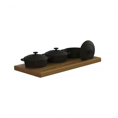 Conjunto 03 Panelinhas Ferro Fundido e Aparador Madeira