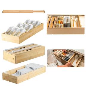 Leve sofisticação e praticidade para o seu dia a dia com o Kit Completo de Organização Aspen Decor Este conjunto versátil da Linha Keep Bambu é feito para transformar a rotina, maximizando o aproveitamento de espaço em gavetas e organizando itens essenciais com elegância. Ideal para otimizar a cozinha, combinando sustentabilidade e funcionalidade, ele traz tudo o que você precisa para manter utensílios, temperos e objetos sempre ao seu alcance, de forma segura e harmoniosa.