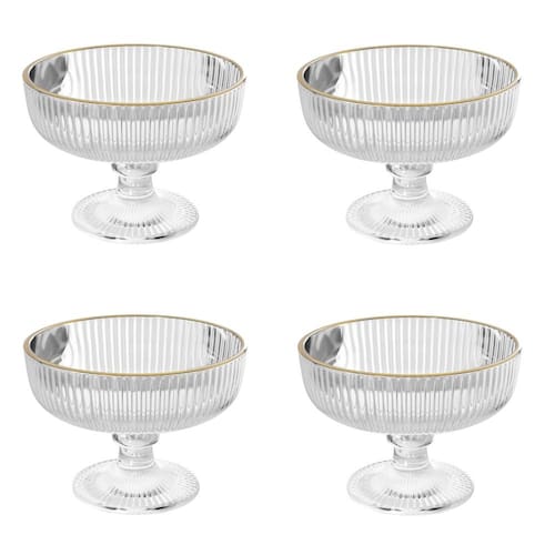 Conjunto 04 Taças de Sobremesa Cristal Ecológico 300 ml Lines Fio de Ouro Wolff