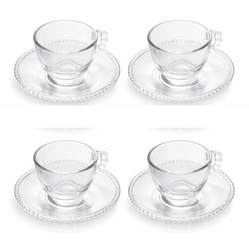 Incluso: 04 xícaras + 04 pires (pires em formato redondo)