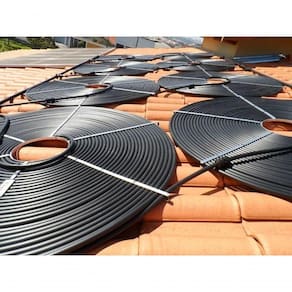 Para o coletor circular TEK 1000, são utilizados módulos de 2 (dois) coletores, montados em série, para cada 8 (oito) m3 (metros cúbicos) de água na piscina.