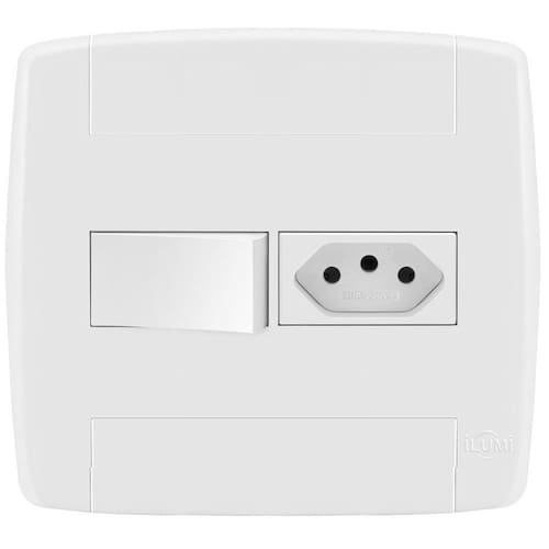 Interruptores e tomadas - linha modular: ilumi lev conjunto 4x4 completo e desmontado com: 1 módulo de tomada 10a 1 módulo de interruptor 1 placa 4x4 com suporte para 2 módulos 4 parafusos para montar é fácil, apenas um click. Só encaixar