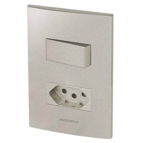 Alumbra Inova Pro Class - Placas Titanium / Módulos Titanium Linha Modular de Interruptores e Tomadas Conjunto Completo Desmontado: 1 Módulo de 1 Módulo de Tomada 20A 1 Placa 4X2 para 2 Módulos 1 Suporte 4X2 2 Parafusos Cor: Titanium Para montar é apenas um click, só encaixar Marca de conformidade de produtos certificados. Marca: Não Informado