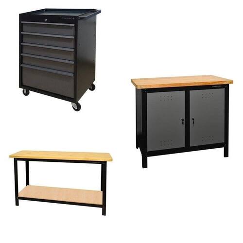 Conjunto 1 Carro Profissional 5 Gavetas 2 Bancadas 150cm para Ferramentas Presto Preto