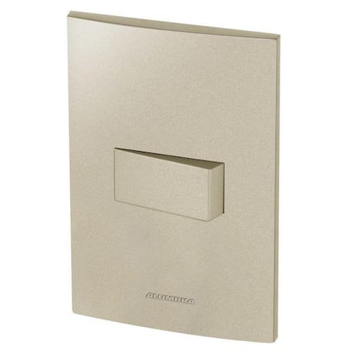 Alumbra Inova Pro Class - Placas Champanhe / Módulos Champanhe Linha Modular de Interruptores e Tomadas Conjunto Completo Desmontado: 1 Módulo de Interruptor Simples 1 Placa 4X2 para 1 Módulo 1 Suporte 4X2 2 Parafusos Cor: Champanhe Para montar é apenas um click, só encaixar