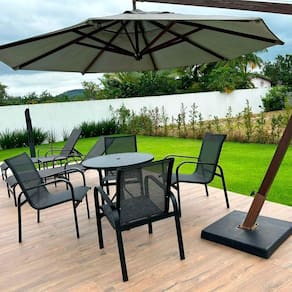 Foi pensando em você que desenvolvemos o Jogo de 1 Mesa Tampo em Alumínio Ripado + 4 cadeiras em Tela Sling + 2 Espreguiçadeiras em Tela Sling + 1 Mesinha de centro + 1 Ombrelone Lateral - Móveis Com Valor, que vem para trazer comodidade e praticidade, perfeito para qualquer ambiente, contando com um design despojado e suave. Sua matéria-prima de excelente qualidade lhe garante toda durabilidade e resistência que você merece.