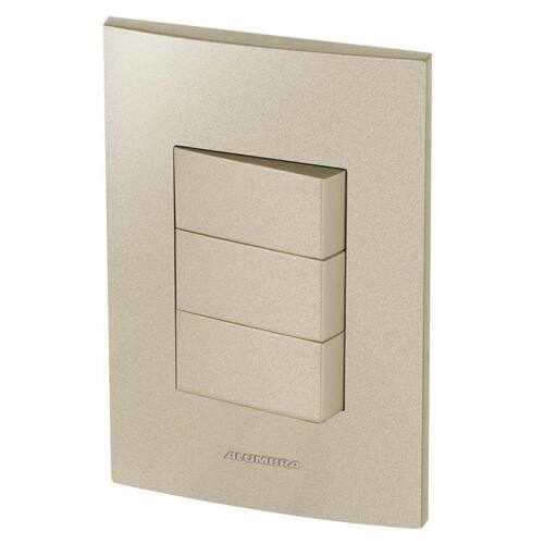 Alumbra Inova Pro Class - Placas Champanhe / Módulos Champanhe Linha Modular de Interruptores e Tomadas Conjunto Completo Desmontado: 1 Módulo de Interruptor Simples 2 Módulos de Interruptor Paralelo 1 Placa 4X2 para 3 Módulos 1 Suporte 4X2 2 Parafusos Cor: Champanhe Para montar é apenas um click, só encaixar