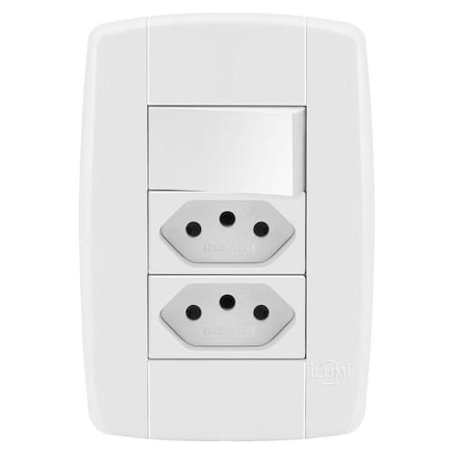 Linha Modular Ilumi Lev Conjunto Completo e Desmontado com: 2 Módulos de Tomada 20A 1 Módulo de Interruptor Simples 1 Placa 4X2 com suporte para 3 Módulos 2 Parafusos Para montar é fácil, apenas um click. só encaixar