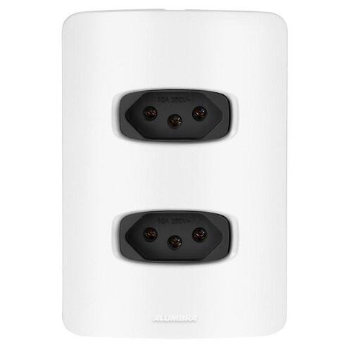 Alumbra Gracia - Placa Branca / Módulos Pretos / Interruptores e Tomadas Conjunto Completo Desmontado com: 1 Módulo de Tomada 10A 1 Módulo de Tomada 20A 1 Placa para 2 módulos 4X2 1 Suporte 4X2 2 Parafusos Para montar é apenas um click, apenas encaixar