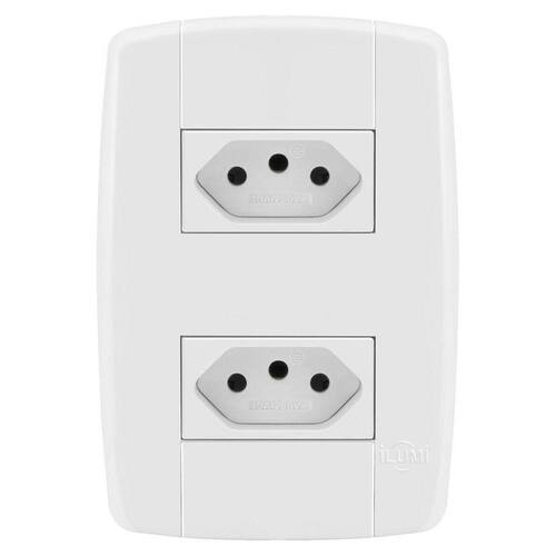 Linha Modular Ilumi Lev Conjunto Completo e Desmontado com: 1 Módulo de Tomada 10A 1 Módulo de Tomada 20A 1 Placa 4X2 com suporte para 2 Módulos 2 Parafusos Para montar é fácil, apenas um click. só encaixar
