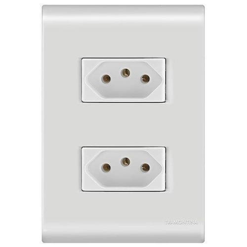 Interruptores e Tomadas - Tramontina Liz Branca Conjunto completo com: 1 Módulos de Tomada 10A 1 Módulos de Tomada 20A 1 Placa para 2 Módulos 4X2 1 Suporte 4X2 2 Parafusos Os itens acima são enviados desmontados, para montar é fácil, só encaixar.