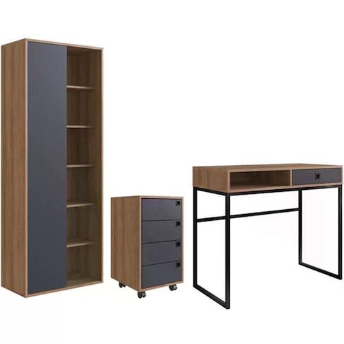Conjunto para Escritorio 03 Peças, possui destaques versáteis, que proporciona um estilo ideal para deixar o ambiente ainda mais moderno. Estrutura em MDP de 15mm, que proporciona melhor acabamento nas bordas e superfícies, contando com pintura Finish Foil (Fosco) que também é conhecido como FF atendendo a todos os requisitos de qualidade e durabilidade. O conjunto é composto por um livreiro com 01 porta de correr, 05 prateleiras, possui pés com sapatas plásticas e estrutura que suporta até 20kg, uma mesa composta por tampo em MDP 15mm seguindo as tendências de decoração mais atuais, base totalmente reforçada em metal de 15mm, 01 gaveta com corrediças metálicas, puxador plástico e 01 nicho para auxiliar na sua organização, e um gaveteiro com 04 gavetas com corrediças metálicas que suportam até 5 kg cada, tampo superior suporta até 10 kg, acompanha 04 rodízios. É a escolha certa para você que quer complementar seu mobiliário, tornando o ambiente em que estiver muito mais moderno. Fácil de montar e com acabamento office que deixa o móvel ainda mais elegante. Estes móveis chegarão em sua casa separados em 03 volumes.