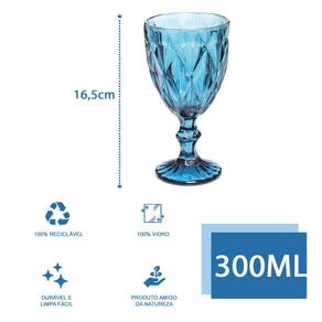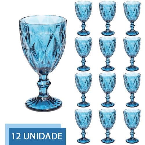 Conjunto 12 Copos Azul Taça Diamante Agua Vinho 300ml