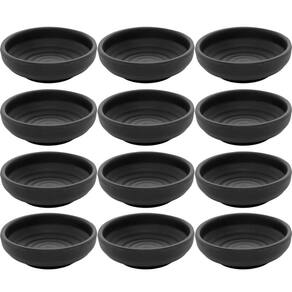 Conjunto 12 Molheiras Porta Shoyu 40ml Redondas Ramekins Melamina Pretos Tóquio Lyor.