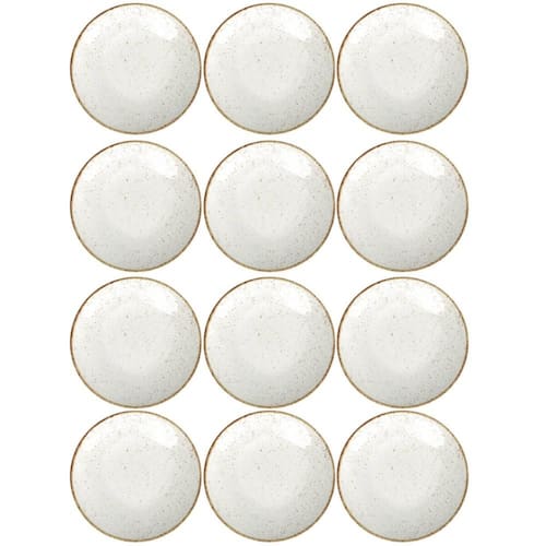 Conjunto 12 Pratos de Porcelana Tramontina para Sobremesa 21cm Rústicos Decorados Marrom.