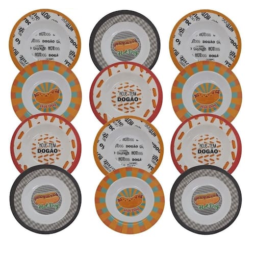 Prato Redondo de Melamina – Estampa Colorida de Hot dogDeixe suas refeições mais divertidas com este lindo prato redondo de melamina! Com uma estampa vibrante e criativa de cachorro-quente, ele é perfeito para servir lanches, refeições rápidas ou até mesmo pratos especiais com um toque de descontração.- Material: Melamina resistente e durável- Prato fundo- Diâmetro aproximado: 17cm- Estampa colorida e alegre- Ideal para refeições temáticas, festas ou dia a dia- Torna sua mesa mais divertida e cheia de estilo"As estampas serão enviadas conforme a disponibilidade em nosso estoque."Itens Inclusos:12 Pratos em melamina Marca: Não Informado