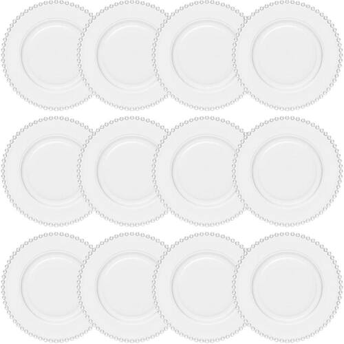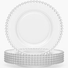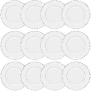 Conjunto 12 Pratos Rasos 28cm de Jantar Cristal Transparente Pearl Wolff Redondos