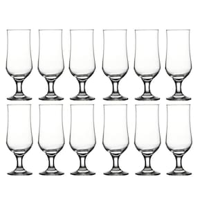 As taças têm altura de 19cm, diâmetro de 6,1cm e espessura de 3mm. São fabricadas em vidro transparente de alta qualidade, garantindo durabilidade e resistência. O conjunto conta com 12 taças, perfeito para compartilhar bons momentos com amigos e familiares.