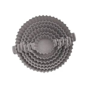 Conjunto 18 Formas de Silicone Air Fryer Forno Micro Ondas Conjunto Formas de Silicone Air Fryer Forno Micro Ondas ===================================== Produzidas em silicone flexível e atóxico, essas formas suportam altas temperaturas e podem ser usadas com segurança no forno, micro-ondas, air fryer e freezer. Seu formato redondo com alças laterais garante praticidade no manuseio e facilidade na hora de desenformar. Além da resistência térmica, o silicone de alta qualidade facilita a limpeza, pois não retém resíduos e pode ser lavado manualmente ou em lava louças. Reutilizável e durável, o material permite uso frequente sem perder a eficiência. Para melhores resultados, recomenda-se untar levemente com óleo ou antes do uso e evitar utensílios metálicos. A limpeza deve ser feita com esponja macia e detergente neutro para preservar o material por mais tempo. ===================================== Contém: 18 Formas 03 de cada tamanho Especificações: - Material: Silicone - Medida Forma 01: 05cm x 19cm cada - Medida Forma 02: 4,5cm x 16cm cada - Medida Forma 03: 04cm x 15cm cada - Medida Forma 04: 04cm x 12cm cada - Medida Forma 05: 3,5cm x 9,5cm cada - Medida Forma 06: 3,5cm x 07cm cada - Temperatura Suportada: até 220C - Flexível - Com Alça - Livre de BPA - Atóxico - Antiaderente - Reutilizável - Cor enviada de forma aleatória conforme disponibilidade em ===================================== Devido à diferença entre monitores e iluminação diferentes, pode haver variação na tonalidade apresentada no anúncio. Medidas muito aproximadas. Marca: Não Informado Ean: 6013400057684