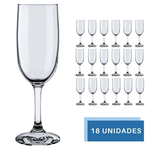 Conjunto 18 Taça de Vidro 180ML CHAMPAGNE Elegante Ano Novo