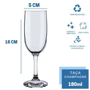 A Taça Champagne traz um toque de sofisticação e elegância para sua mesa, tornando o momento de servir especial, para você, seus familiares e visitas, com brindes muito mais graciosos. A Taça é produzida com vidro resistente e fácil de limpar.