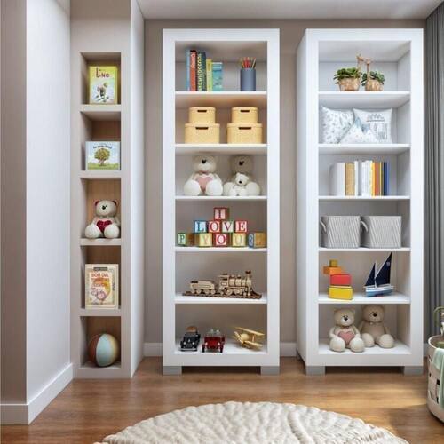 Conjunto 2 Armários Multiuso Infantil 5 Prateleiras Flex Branco. Este conjunto de 2 armários multiuso infantis com 5 prateleiras cada é uma excelente opção para organizar o quarto do seu filho. Fabricados com materiais de alta qualidade, esses armários oferecem amplo espaço de armazenamento e são ideais para crianças pequenas. O design minimalista e clean se adapta facilmente a diferentes estilos de decoração infantil, garantindo vantagens.