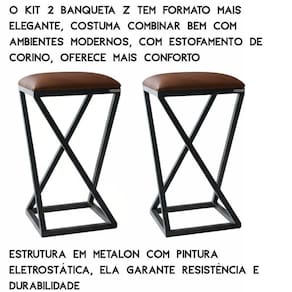 Conjunto 2 Bancos Bar Banqueta Baixa Ferro Estofada Marrom