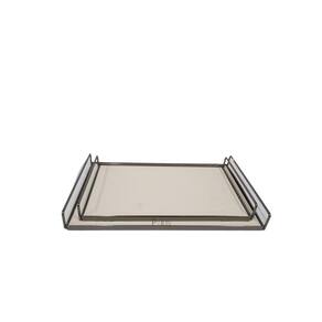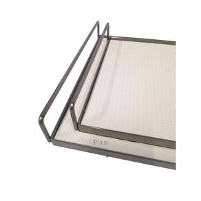 Conjunto 2 Bandejas Decorativas de Metal e Couro Cinza